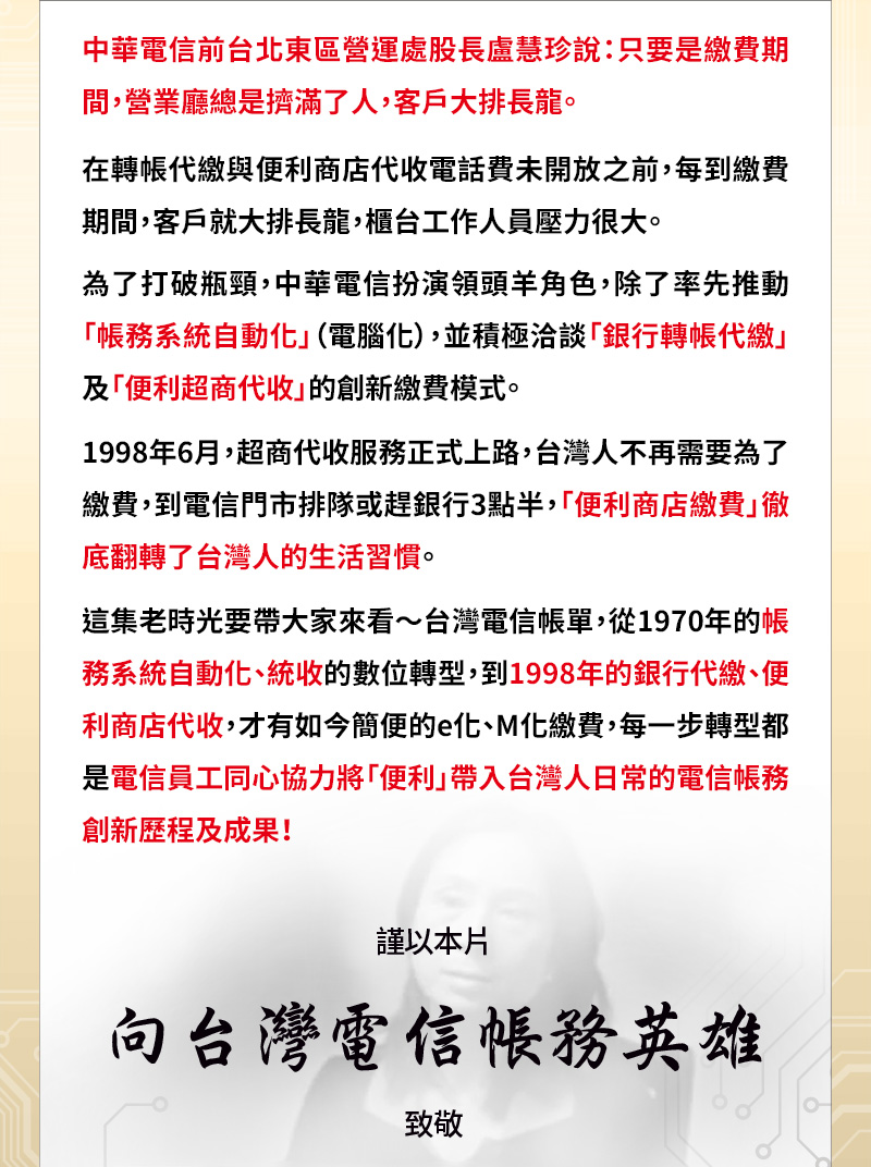 還記得那些觸動心底深處的職涯故事嗎? 回顧,是為了前瞻。記憶,是我們的共同力量! 轉寄希望、傳遞改變,敬請多多轉傳【電信國寶守護人】~ 心中有光、腳下有力,電信職人的每一步都走的踏實堅韌! 更多台灣電信職人的百年追求,就在電信國寶守護人! 類別:電話 | 作者:中華電信 潘儀青