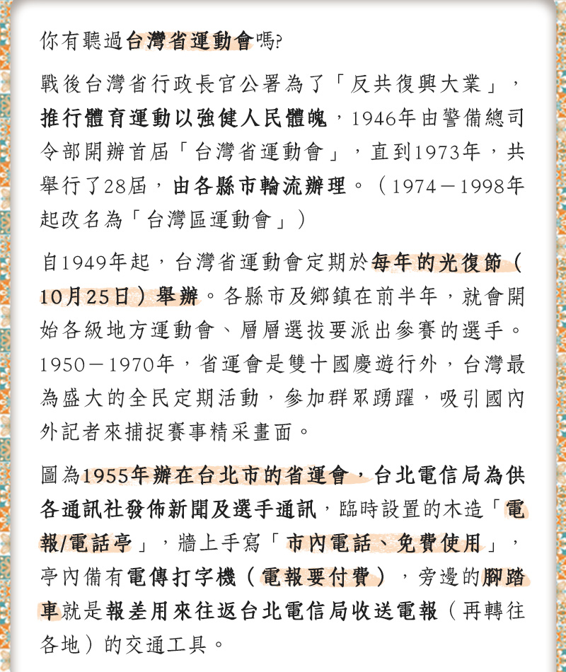 類別:光復節、台灣省運動會、電話亭 | 作者:中華電信 潘儀青